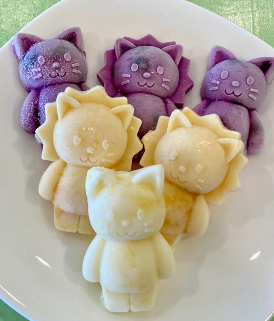 秋になってもまだ暑いですね。くず粉やヨーグルトのアイスクリームは、可愛い動物型で作っています。